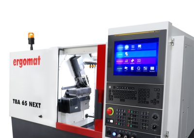 Representando a quinta geração da família de tornos de carros múltiplos da ERGOMAT, o TBA 45/65 NEXT traz a fusão ideal entre uma máquina CNC clássica e um torno de carros múltiplos de altíssima produtividade.